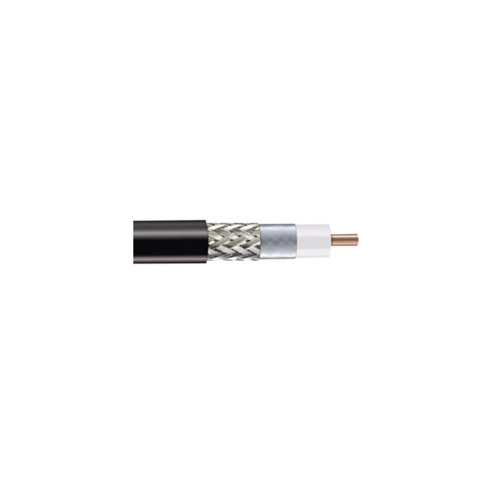 Cable coaxial de 50 Ohmnios y bajas pérdidas con malla trenzada de cobre y película de aluminio tipo LMR/CNT240, cubierta retardante a la llama LSZH y protección UV.
